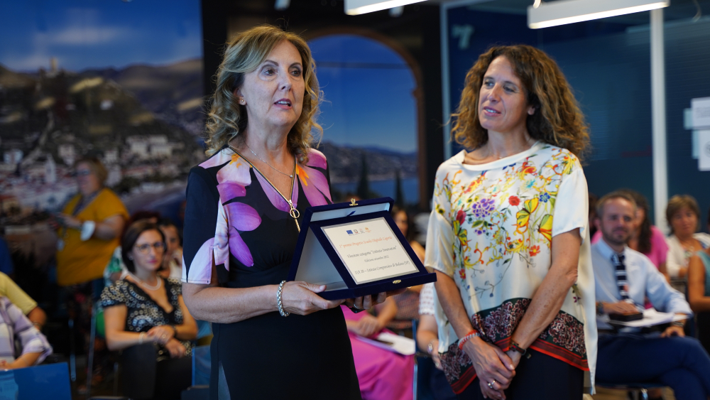 In una sala Auditorium di Liguria Digitale davvero gremita e con oltre 220 partecipanti collegati da remoto, lo staff di progetto e Regione Liguria hanno premiato l'Istituto e i docenti vincitori del 1° premio Progetto Scuola Digitale Liguria.