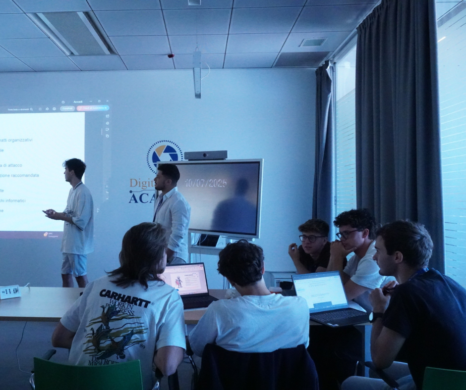 In particolare ciascun gruppo ha illustrato con una presentazione e un report dettagliato che segue gli standard aziendali, un caso di incidente informatico relativo a una web app fittizia.