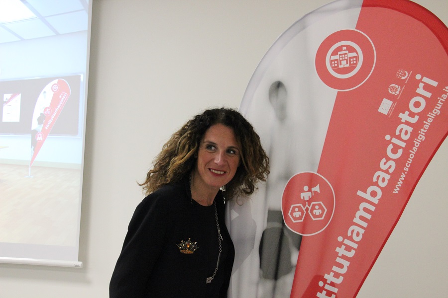 Qual è la motivazione, anche pedagogica, che sostiene l'azione degli Istituti Ambasciatori? Lo ha illustrato Angela Maria Sugliano, dell'Associazione EPICT Italia, associazione di docenti che collabora con il dipartimento DIBRIS dell'Università di Genova sui temi della didattica digitale. "Sostenere la diffusione della cultura digitale nella Scuola - ha illustrato Angela Sugliano - ha come obiettivo ultimo la formazione degli studenti alle competenze che saranno utili per il loro futuro lavorativo, per la loro capacità di cittadinanza digitale, per la possibilità di esprimere al massimo le loro potenzialità anche grazie ai mezzi espressivi del digitale: è con questa motivazione che gli Ambasciatori con una azione fra pari saranno in grado di conquistare i colleghi con i vantaggi che derivano dall’entrare nella Community del Progetto regionale".