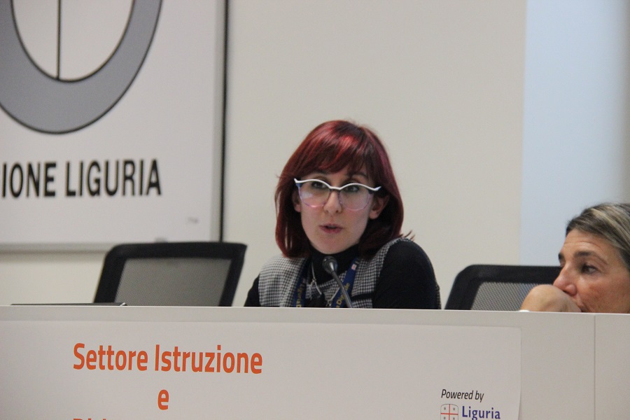 La seconda parte della giornata è stata caratterizzata da workshop operativi durante i quali è intervenuta Ilaria Cavo - Assessore Regionale alle Politiche Giovanili, Scuola, Università e Formazione, che è stata coinvolta nelle fasi dei lavori: i referenti degli Istituti Ambasciatori hanno costituito autonomamente gruppi di lavoro per ambiti territoriali di appartenenza, e hanno aperto una fase di confronto in cui si sono scambiati idee per il coinvolgimento delle scuole afferenti al proprio territorio e per validare insieme linee guida comuni.