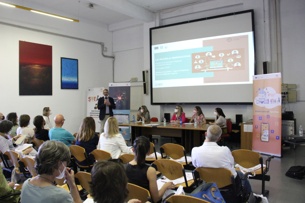 Si è svolto lunedì 23 maggio 2022 fra l'entusiasmo di oltre 50 docenti del territorio di La Spezia l'evento "La Scuola innovativa: pillole di innovazione al Capellini-Sauro", una giornata di formazione sulla didattica digitale ospitata in uno dei maggiori Istituti di riferimento del territorio e realizzata nell'ambito delle azioni del progetto regionale Scuola Digitale Liguria.