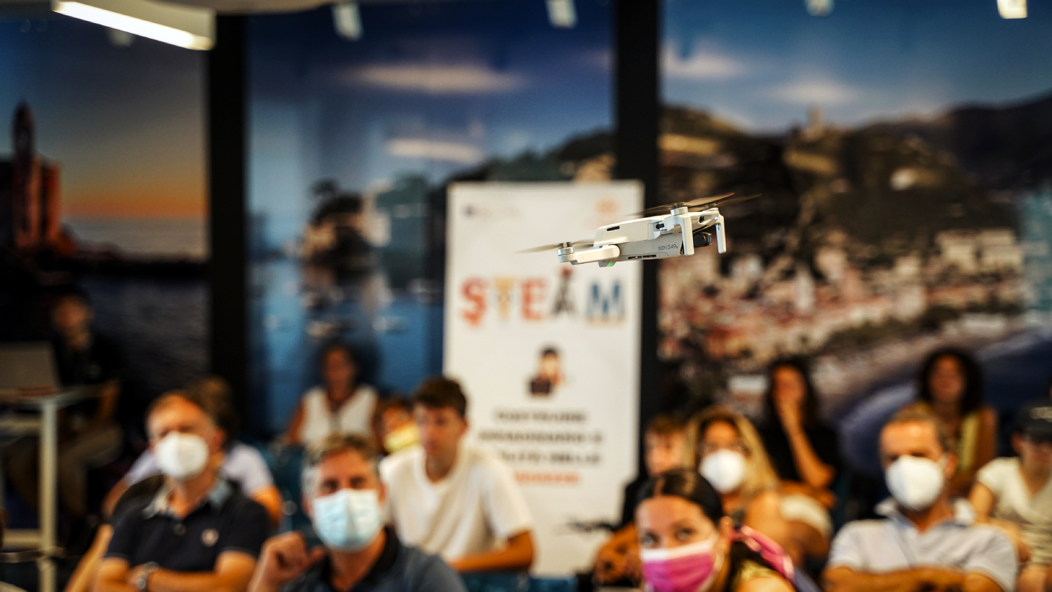 Il fascino dei droni è ormai noto a tutti, ma pochi hanno le conoscenze e le competenze di base per farli volare! Tramite la dimostrazione di volo di alcuni modelli in dotazione all'azienda ICT, Camilla Bajano - videomaker e pilota di droni certificato EASA con attestato A2, in servizio presso Liguria Digitale - ha condotto un laboratorio per offrire una panoramica delle principali funzionalità di un drone e per illustrare le attività propedeutiche all'impostazione di un volo autonomo programmato!