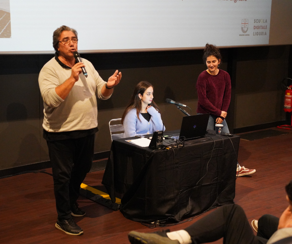 Nicola Vallinoto, Stefano Parodi e Alessandro Miracca, esperti ICT di Liguria Digitale e docenti del corso, hanno riassunto brevemente l’obiettivo, gli strumenti e le modalità di erogazione dei contenuti affiancati da Roberta Serafini, Cecilia Costa e Franco Avran che si sono occupati del racconto multimediale delle attività e della prima parte introduttiva al mondo del lavoro e alle soft skills lanciando la palla all’altro PCTO proposto da Scuola Digitale Liguria interamente dedicato alle soft skills.