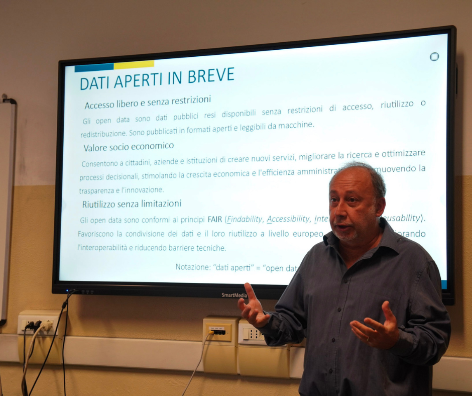 Infine si entra nel vivo del percorso con la prima lezione sugli open data tenuta da Nicola Vallinoto, programmatore ed esperto di software libero di Liguria Digitale.