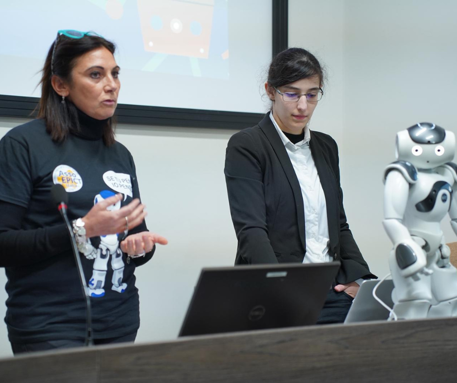 Con NAO invece abbiamo unito la robotica all’inclusione attraverso l’esperienza efficace di Giusy Ponzetta e Lisa Cesario, docente ed esperta EPICT la prima, sviluppatrice di CeSIA S.r.l la seconda. Mediante un software il robot può supportare l’affiancamento di studenti e studentesse con difficoltà di apprendimento e disabilità.