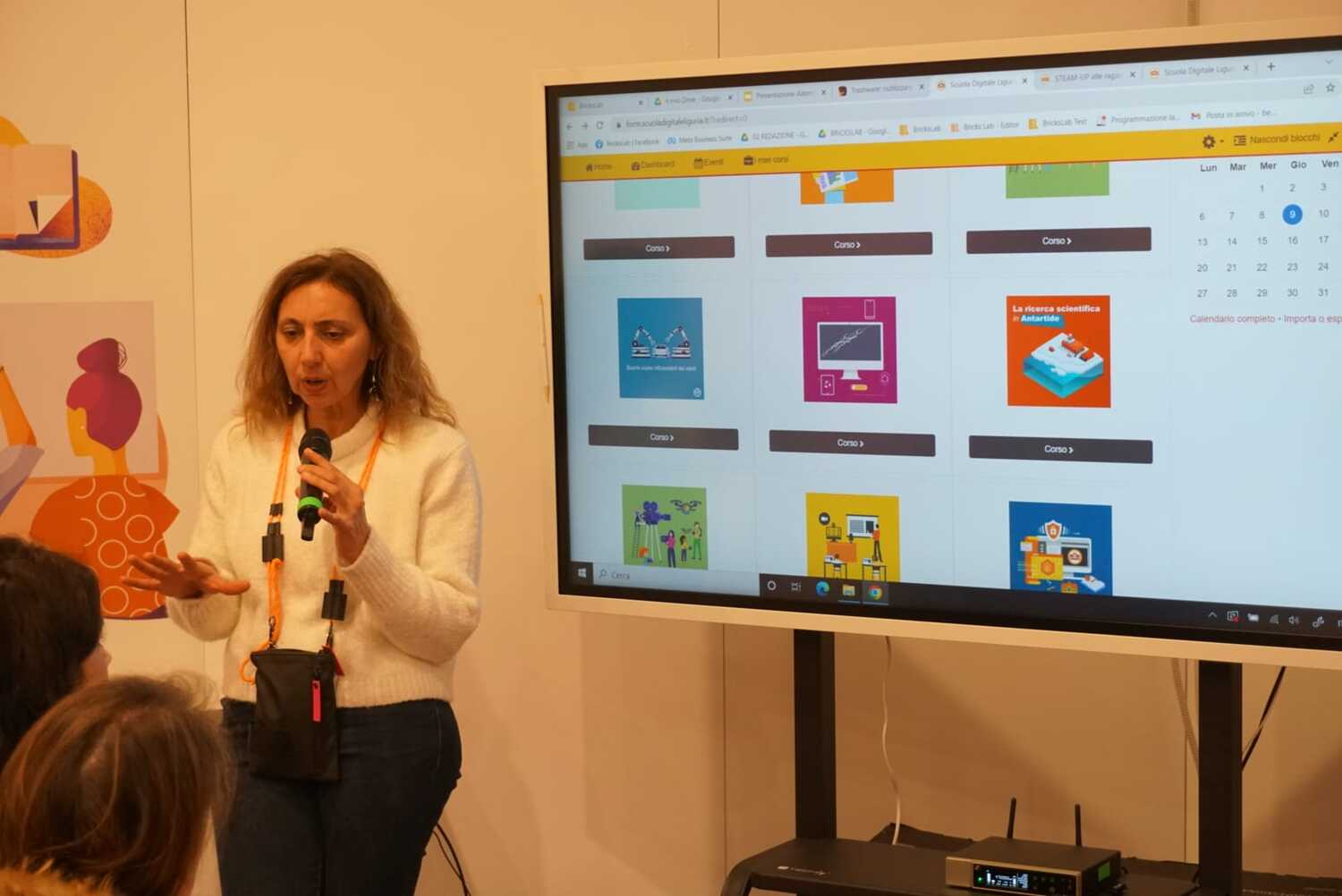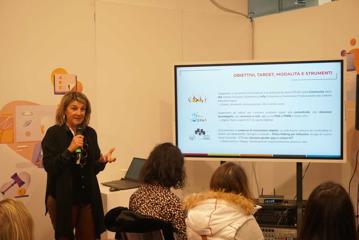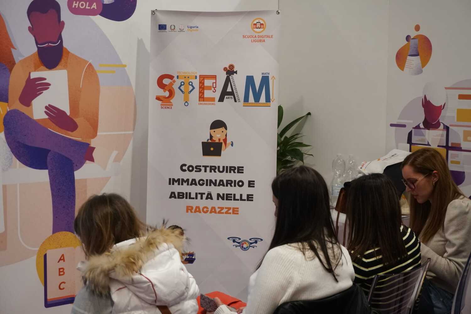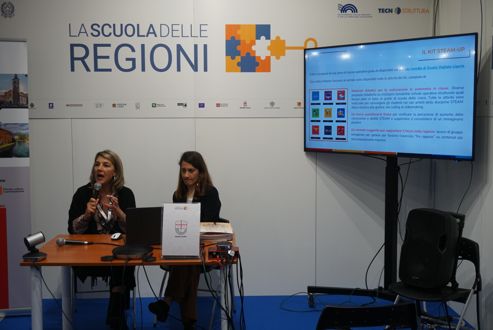 Nell'area di Tecnostruttura "La scuola delle Regioni", Scuola Digitale Liguria ha presentato, in sinergia con #progettiamocilfuturo, le attività in corso in Regione Liguria finalizzate all'orientamento nel senso più ampio del termine, con un focus sull'avvicinamento delle studentesse alle discipline STEAM già a partire dalla scuola primaria.