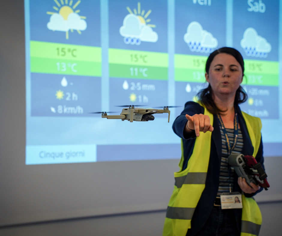 La prima parte della mattinata è stata dedicata al laboratorio ‘Il Volo dei Droni’ a cura di Camilla Bajano, pilota ed esperta di droni. Dopo un’introduzione teorica, ai giovani studenti è stata illustrata la pratica del volo, con esempi e prove terminati con la proiezione di video realizzati con le due tipologie di droni presentati.