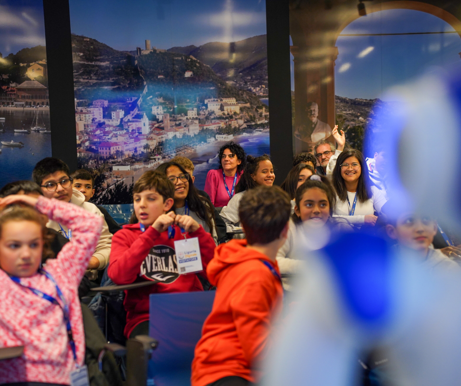 A seguire, il laboratorio curato da Scuola di Robotica ha proposto agli alunni la robotica educativa tramite esempi pratici con l’ausilio del robot NAO. I giovani studenti hanno potuto interagire con domande e partecipazione, e con grande curiosità hanno esplorato l’applicazione dei robot nella vita di tutti i giorni.