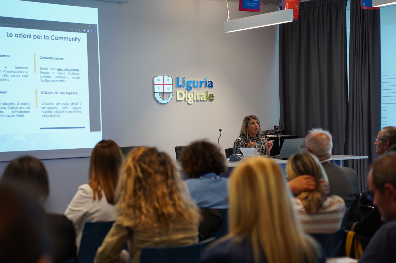 Riccardo Battaglini, dirigente di Liguria Digitale, ha introdotto il lavoro dell’azienda per ridurre il gender gap nel mondo delle professioni legate all’ambito informatico; contributo poi approfondito da Simonetta Premi che recentemente ha ottenuto la certificazione Lead Auditor della Sostenibilità SDG 5 e della Parità di genere.