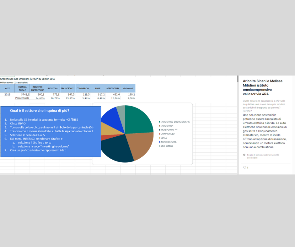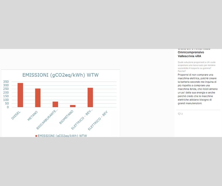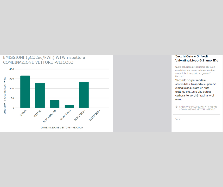 Permettere ai ragazzi di confrontarsi e discutere a partire da dati reali su ipotesi e soluzioni che valutino l’impatto delle auto elettriche per favorire la transizione sostenibile del trasporto su gomma.