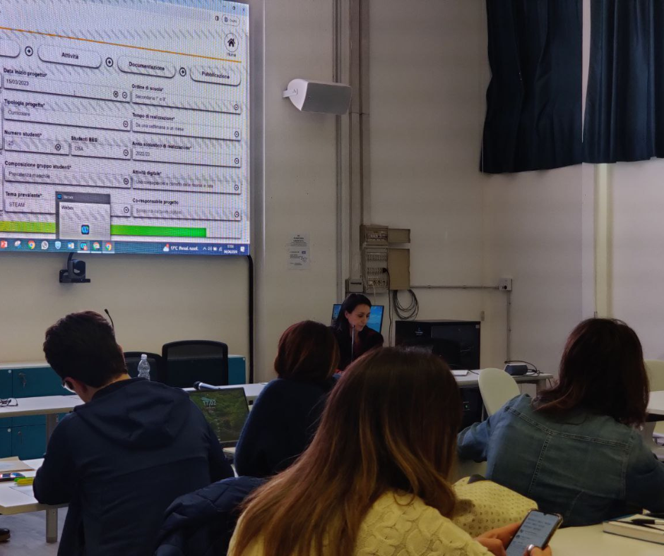 Apertura e saluti iniziali del Dirigente Scolastico del Capellini-Sauro, Antonio Fini, e introduzione all’Osservatorio a cura di Monica Cavallini e Angela Maria Sugliano. A seguire i docenti, divisi in piccoli gruppi e collaborando tra di loro, hanno potuto mettere mano direttamente sul loro profilo e iniziare l’inserimento di un progetto realizzato con il digitale.