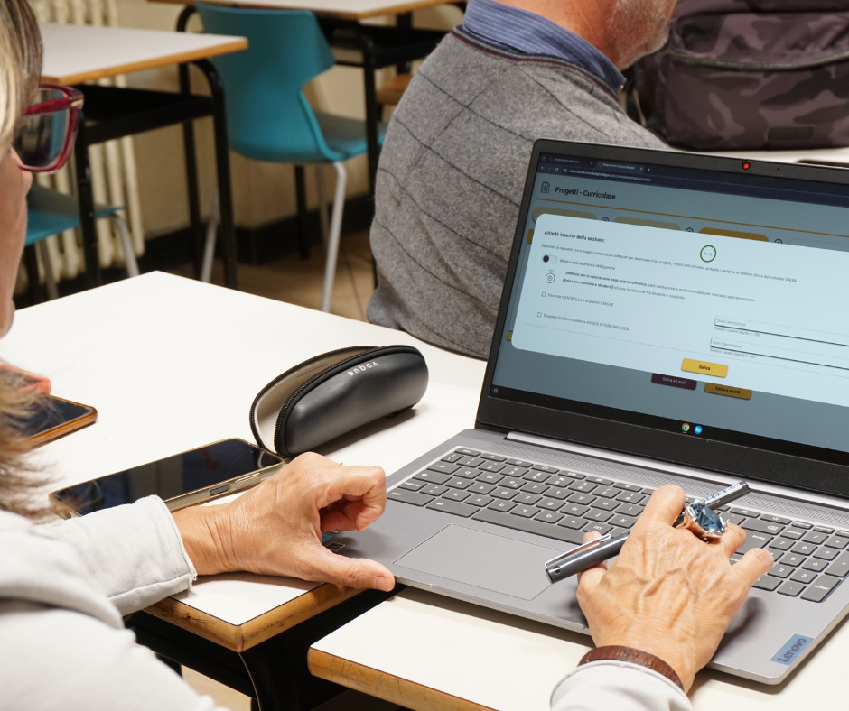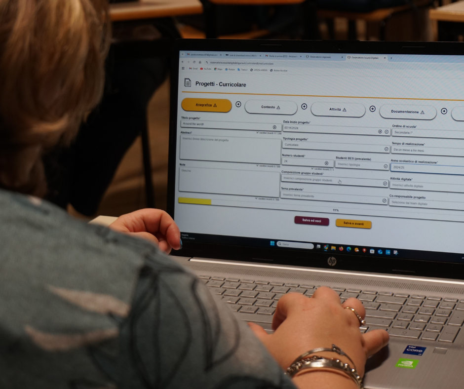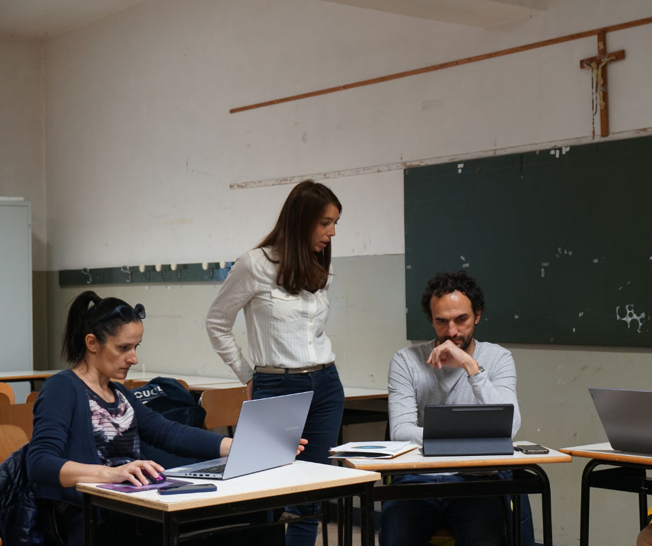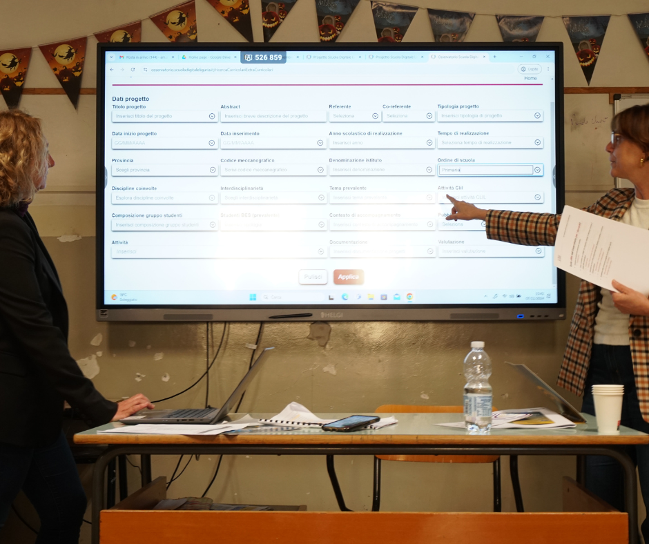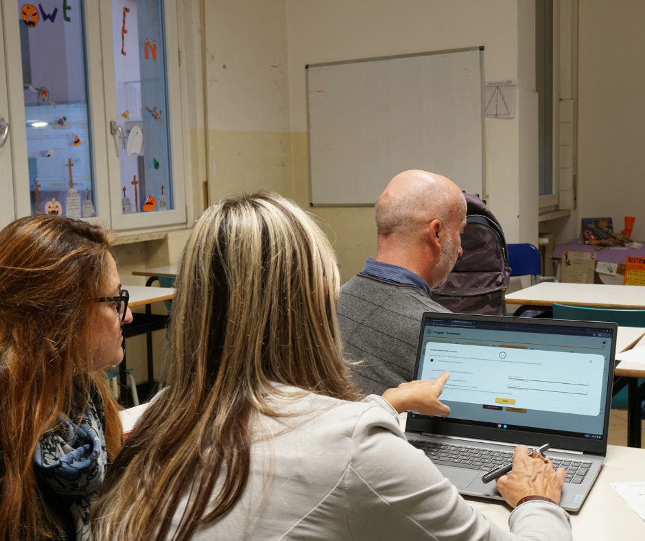 Infine nella sessione laboratoriale, i docenti, seguiti dai quattro mentor - Desiree Coccoli, Gianna Molina, Andrea Cartotto - e divisi in piccoli gruppi, si sono cimentati con il caricamento di un loro progetto realizzato grazie agli strumenti digitali.
