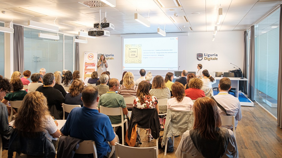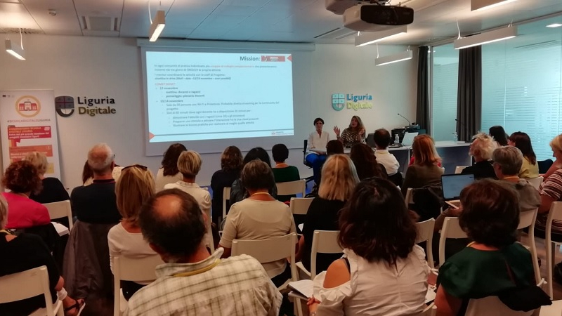11 settembre 2019: un'altra tappa in Liguria Digitale dedicata a docenti e formatori che partecipano alle attività delle Comunità di Pratica. La giornata ha coinvolto oltre 50 docenti che hanno potuto accedere alla piattaforma per la valutazione delle competenze digitali e hanno iniziato a progettare la partecipazione degli studenti a Orientamenti 2019.