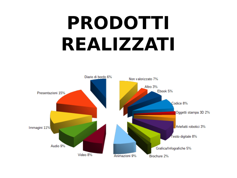 - Prodotti realizzati > "Presentazioni" (15%), "Immagini" (11%), "Audio" e "Animazioni" (9%)