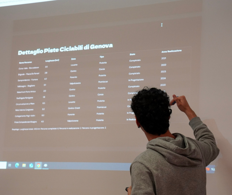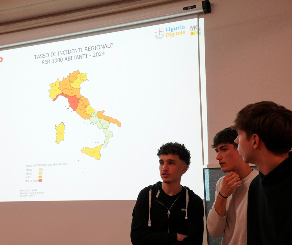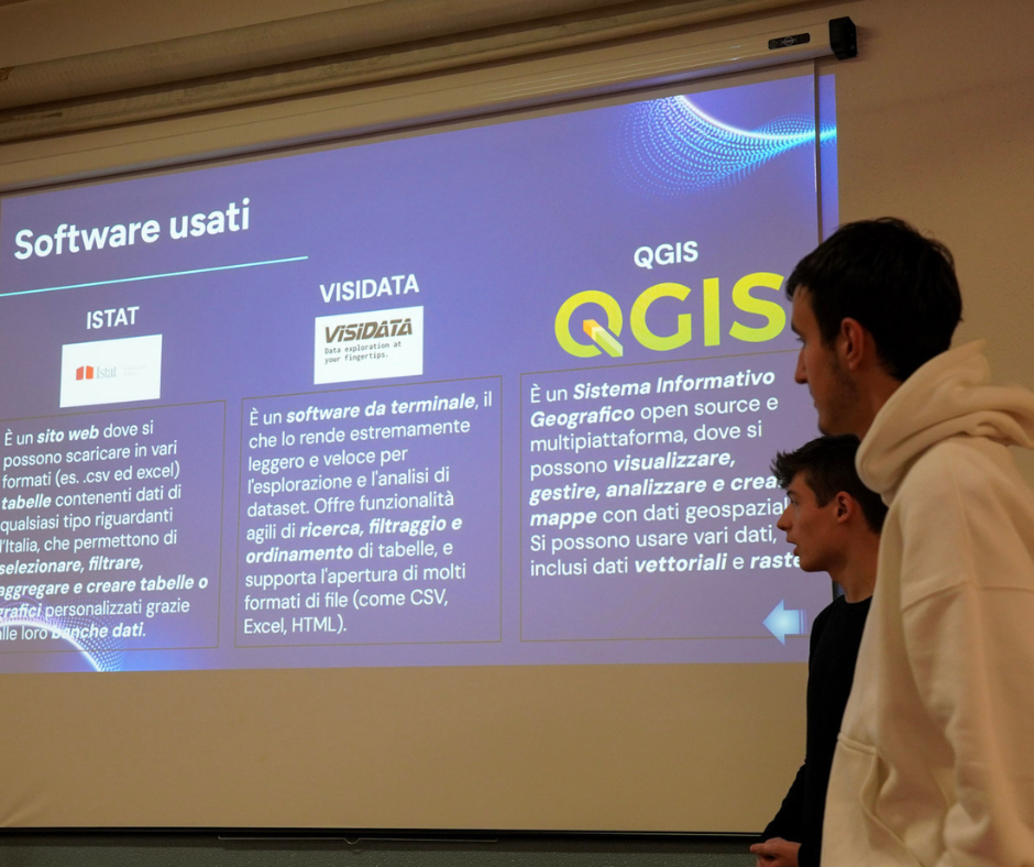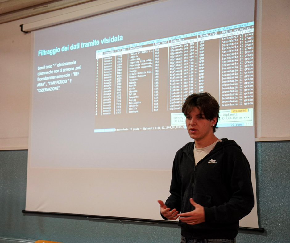 Un percorso che parte dalla teoria, presentata dagli esperti di Liguria Digitale, viene applicato con la pratica attraverso i software liberi Visidata e QGis, e infine si concretizza con un project work svolto in autonomia dai singoli gruppi di studenti.