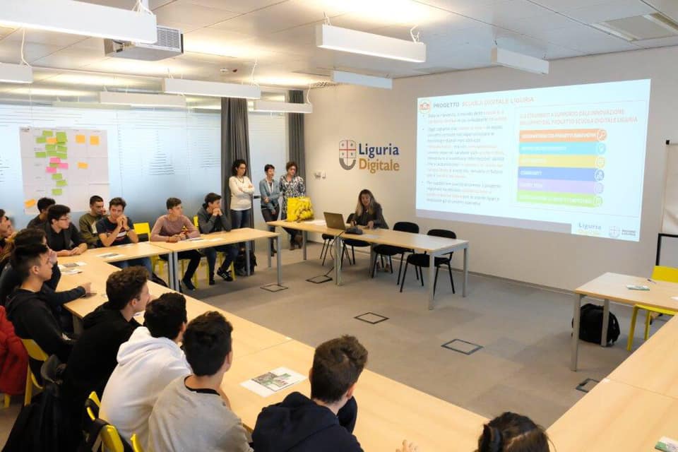 Tra le attività iniziali la presentazione dell'azienda e delle sue attività, tra cui il Progetto Scuola Digitale Liguria a testimonianza del forte legame tra il mondo della scuola e le competenze professionali del settore ICT. Dopo una visita alla sede di Liguria Digitale, i ragazzi in PCTO (Percorsi per le Competenze Trasversali e per l'Orientamento) hanno conosciuto i responsabili dei settori a cui sono stati affiancati e hanno ricevuto le magliette di Scuola Digitale #DigitaliSicuri.