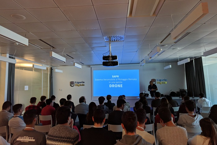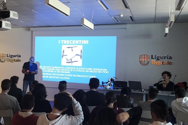 Sempre nell'ambito delle esperienze innovative con gli studenti si inserisce la visita didattica alle strutture di Liguria Aziendale di 22 studenti della classe terza - corso operatore grafico - dell’Istituto Fassicomo. Durante la mattinata in Liguria Digitale i ragazzi hanno potute approfondire, insieme agli studenti in Alternanza, le tematiche social network e droni.